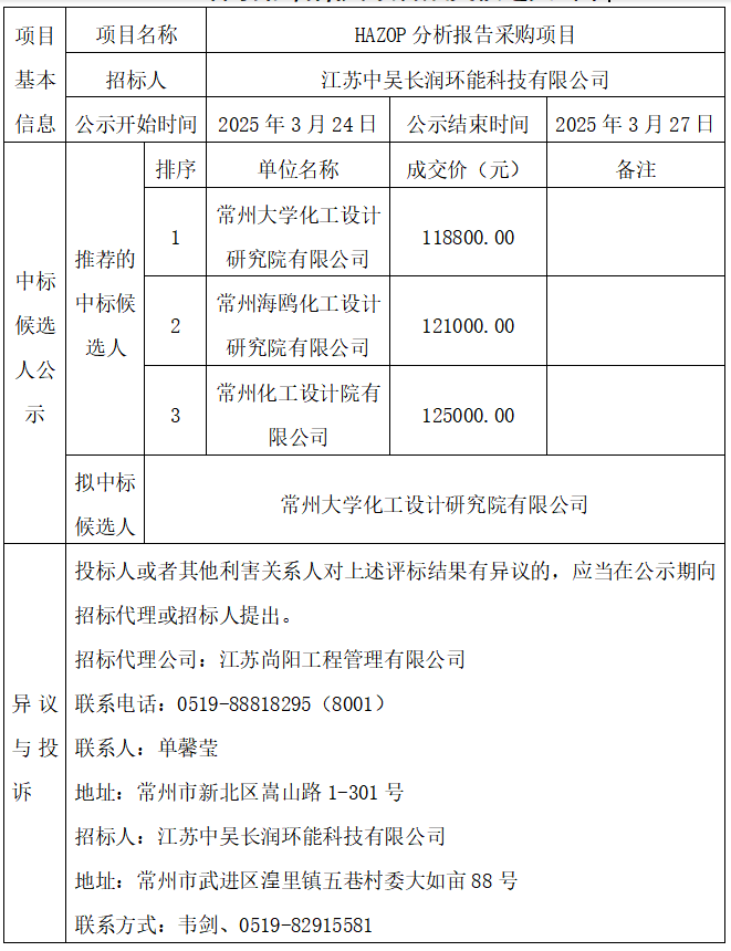 HAZOP分析報(bào)告采購(gòu)項(xiàng)目成交候選人公示