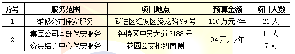 本項目擬確定2家中標人,根據(jù)中標排名順序依次分別完成序號1至2范圍內(nèi)的保安服務。