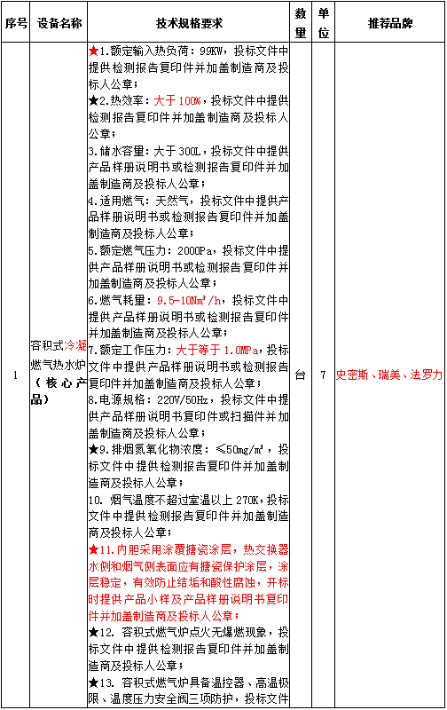 1.招標(biāo)文件第三章技術(shù)要求中熱水爐的參數(shù)有較多更正,具體詳見附件。